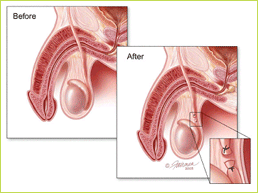 | 수술의 원리는 고환에서 만들어진 정자가 부고환을 거쳐 정관을 통하여 정낭과 전립선내에서 저장 및 숙성되어 사정관을 통하여 요도로 방출되게 되는데 이 중 정자의 통로인 정관을 차단하는 방법입니다.